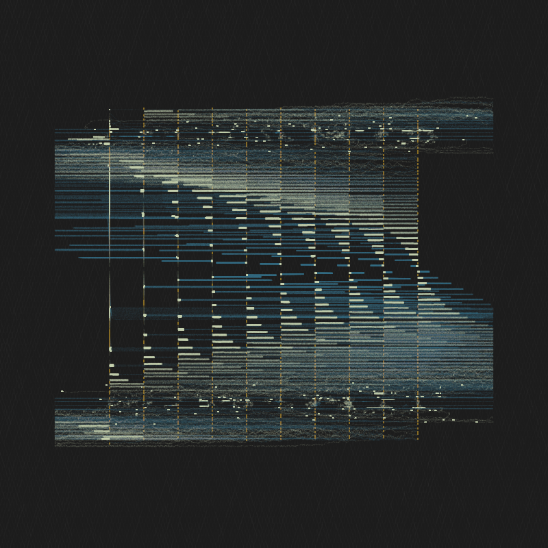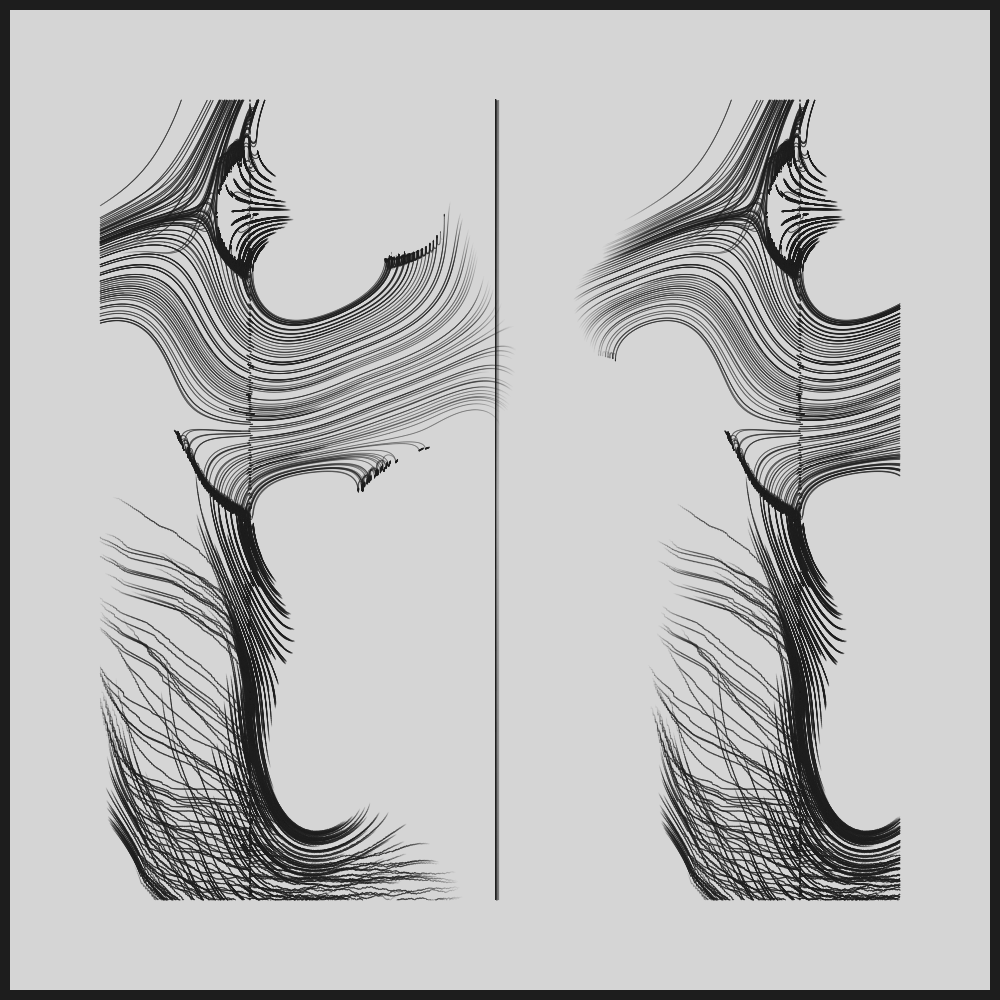 Dissonant Oscillation by dist.cs is a generative code-based work created with p5.js and custom shaders, capturing a quiet dialogue between tension and release. Gradient hues drift across the canvas in steady, pulsing motion—subtle shifts that convey a sense of perpetual transition. The piece combines feedback loops and chromatic aberration to produce a visual experience that feels both restrained and expansive.
